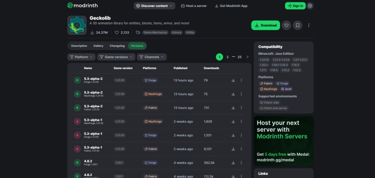 ⚠️ Important: Download the same Minecraft version of Geckolib as the Cave Dweller Mod you downloaded in Step 1.
