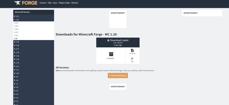 Choose the correct version of Forge that matches your mod and Minecraft version (for example, Forge 1.20 for Minecraft 1.20).