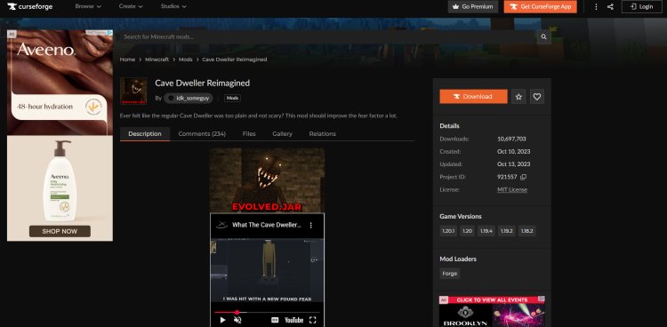 To start, download the Cave Dweller Mod from the official CurseForge page: