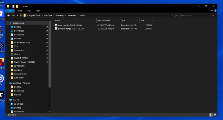 Drag and drop both Cave Dweller Mod (.jar) and Geckolib (.jar) into this folder.