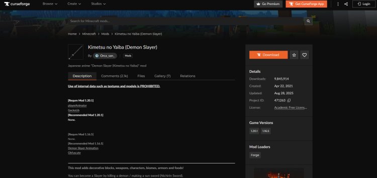 Step 1: Download the Kimetsu no Yaiba (Demon Slayer) Mod
