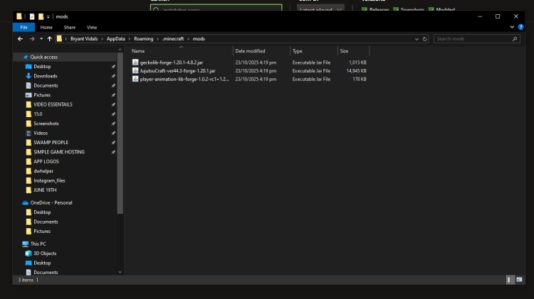 Once Minecraft loads, check the Mods tab — you should see Jujutsu Craft, PlayerAnimator, and GeckoLib installed successfully.