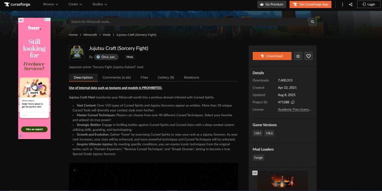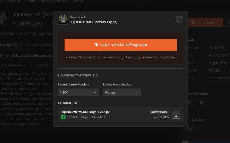First, download the official Jujutsu Craft (Sorcery Fight) mod from CurseForge: