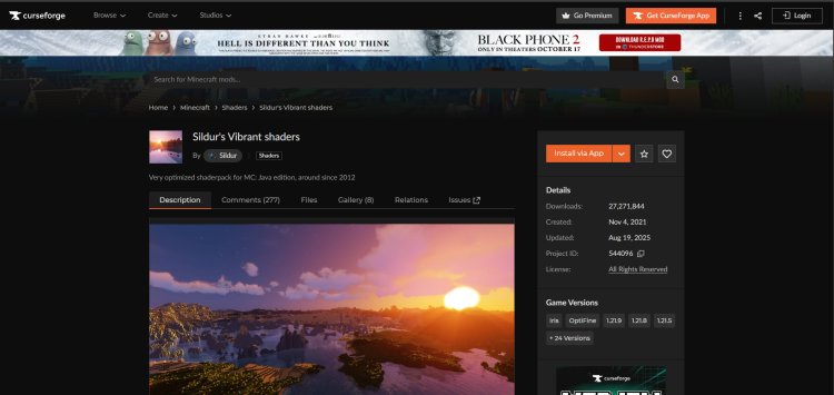 ➡️ Download it here: Sildur’s Vibrant Shaders (CurseForge)